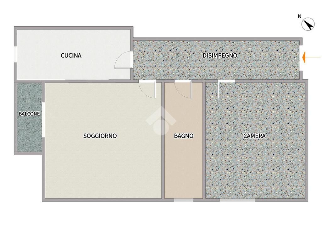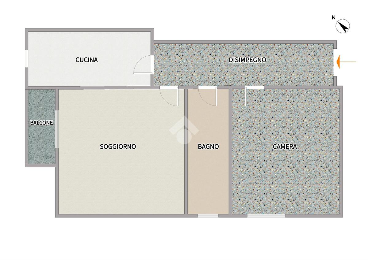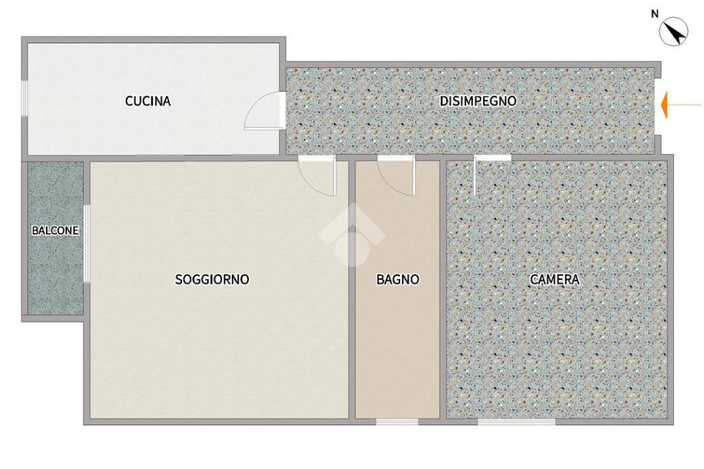 L’appartamento è composto da ingresso con corridoio che conduce ad una spaziosa e luminosa camera matrimoniale finestrata, un bagno finestrato di buone dimensioni, un soggiorno con accesso al balcone e, infine, una cucina separata abitabile anch’essa finestrata.